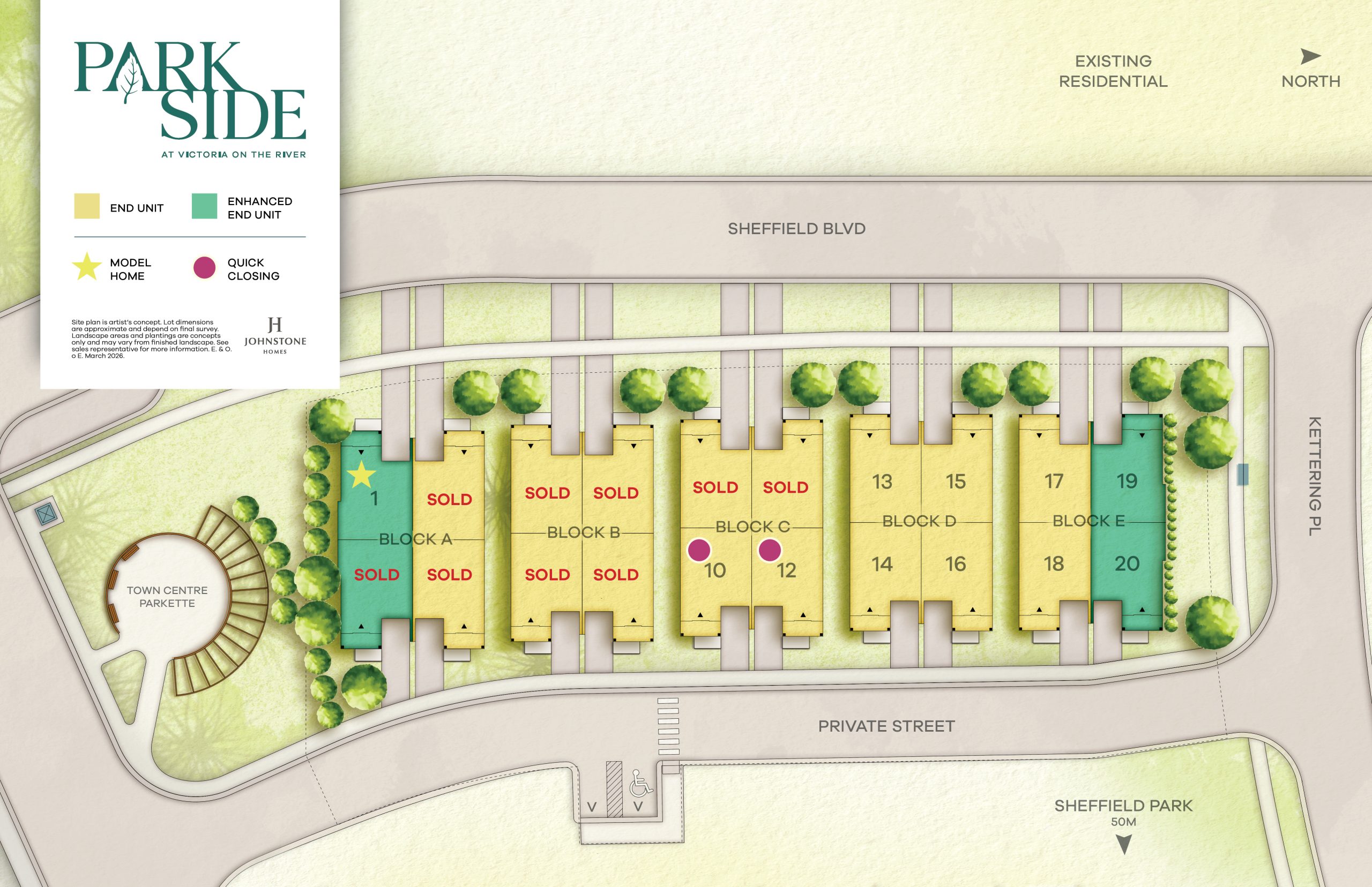 Parkside is a thoughtfully designed collection of 3 bedroom townhomes in the vibrant, master-planned community of Victoria on the River. With Sheffield Park right outside your door, your family can enjoy fresh air, playtime, and outdoor living every day.